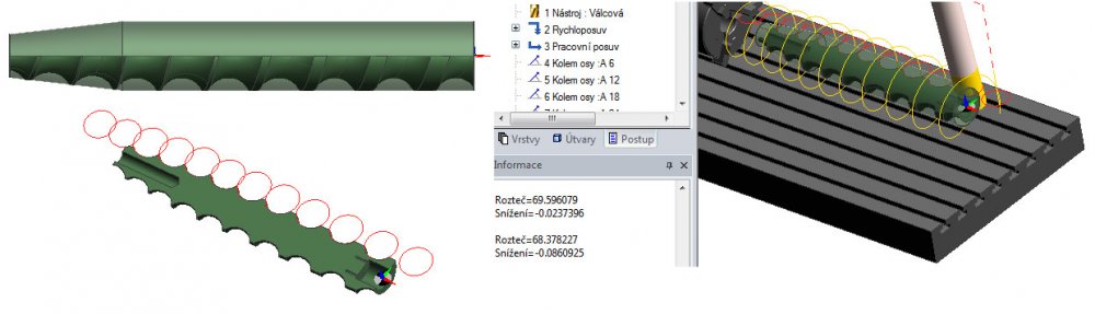 Mit einem Makro generieren wir Pfade zum Fräsen der Form mit der vierten Drehachse. Die Bedingung ist, dass die Form ein konstantes Profil ist, das entlang einer Helix gezeichnet ist. Die Steigung der Helix kann beliebig variabel sein. Dies ist keine 4-Achsen-Serienbearbeitung, sondern eine Indizierung um die Teilerachse und eine ständige Wiederholung des 3-Achsen-Zyklus.